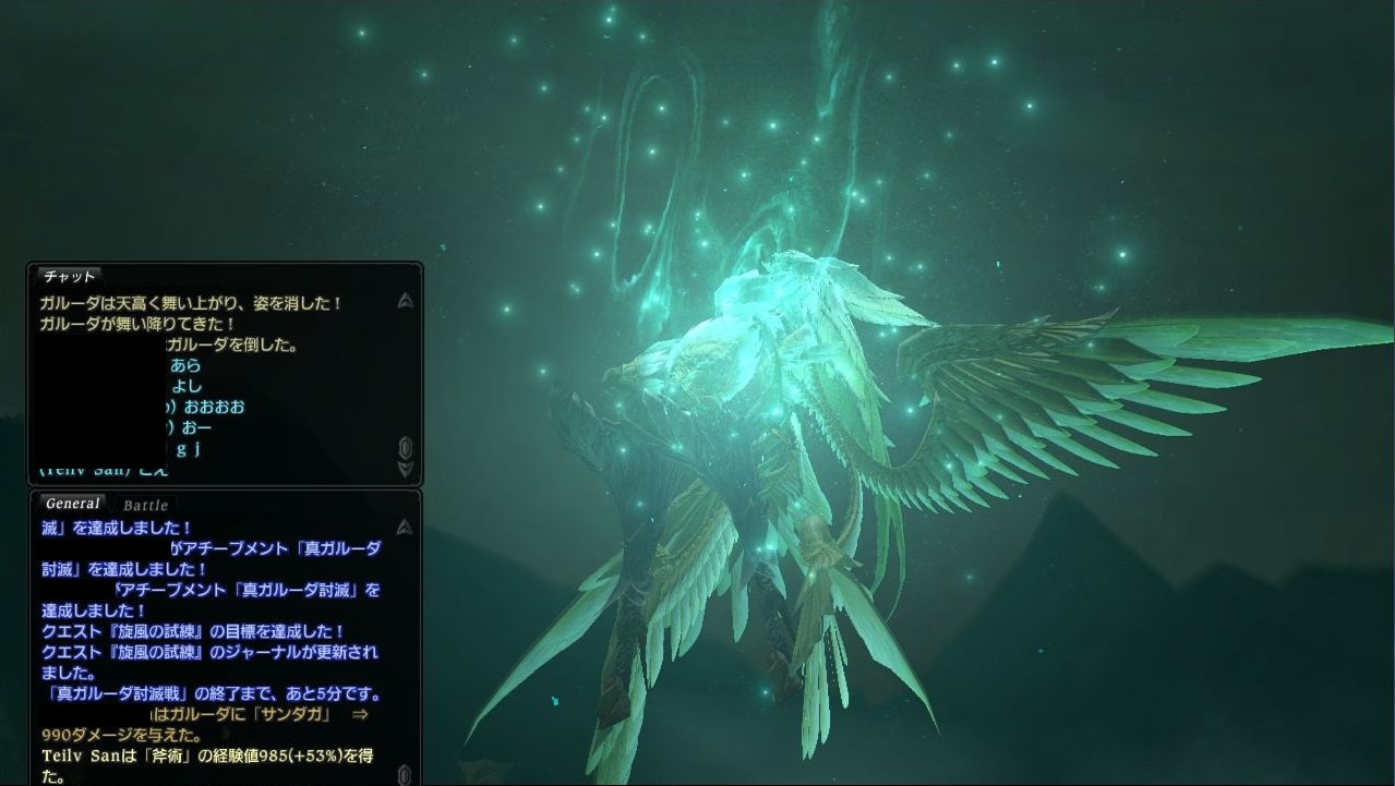 ガルーダHP1mmもない状態までもっていて、エリアルバーストで全滅w
