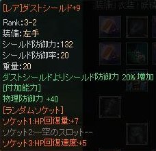 以前、盾をレア化するときに魔物石2個余っていたから、223個あけて魔物石8個。確率3%かー。