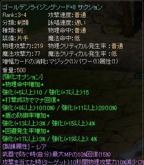 片手剣は、盾として役に立ちそうな盾の防御率+3%強化オプションのある+13までどうにか成功。