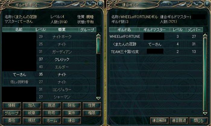 それで、一昨日ソーサリアンオンラインのギルド「WHEELofFORTUNE」のギルドマスターより「ソーサリアンオンライン関連で連合しませんか?」というお誘いがあったので、ギルメンの意志確認後、連合することになりました。(しまった連合申請のSS取り忘れたorz)