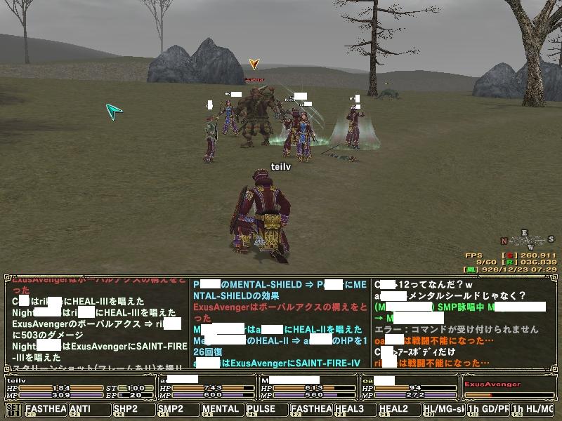 結局、ボスとの一時間にわたる攻防を繰り広げたのですが如何せん、攻撃の決め手に欠ける上ボスの回復を止める手段もなく千日手で終わった訳なのですが……今回は、数の暴力に訴えて人数を3人から5人に増員していってみました。