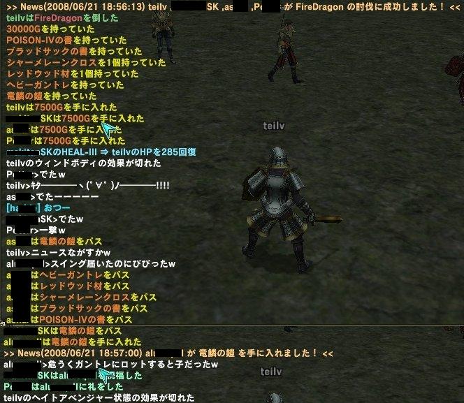 この間、竜鱗の鎧をゲットしたのは、ソサオンを始めて間もない新人さんでしたが、今回ゲットしたのはcβ1の頃からいる最古参ユーザーの一人です。