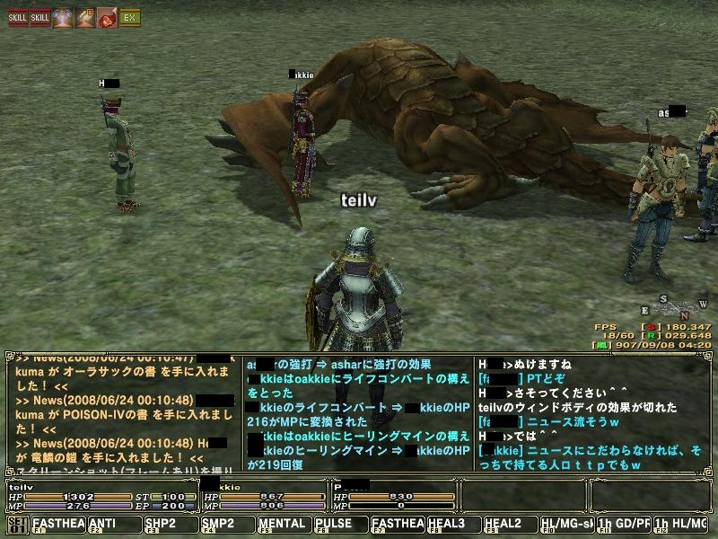 全滅、全滅と言っても、いつもはホスト落として全員戦闘不能になる前に逃げちゃうのが常なのですが…私がホストの場合だとそんなことしませんよ? (だって強制終了で落ちると再ログインに10分も時間がかかるんだもん