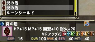 ルーンシールドに同様の星が付いてるそうだけど、この炎の盾を装備したらHP+39にMP-7になって、ライフコンバートの回復量は+10されたそうです。