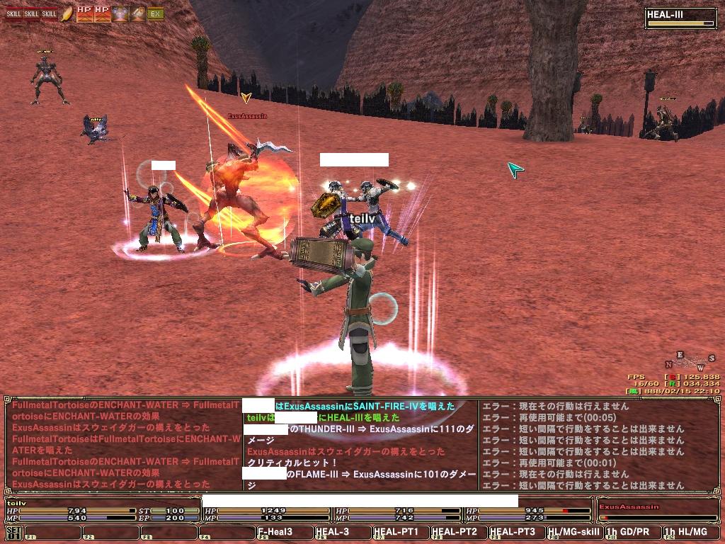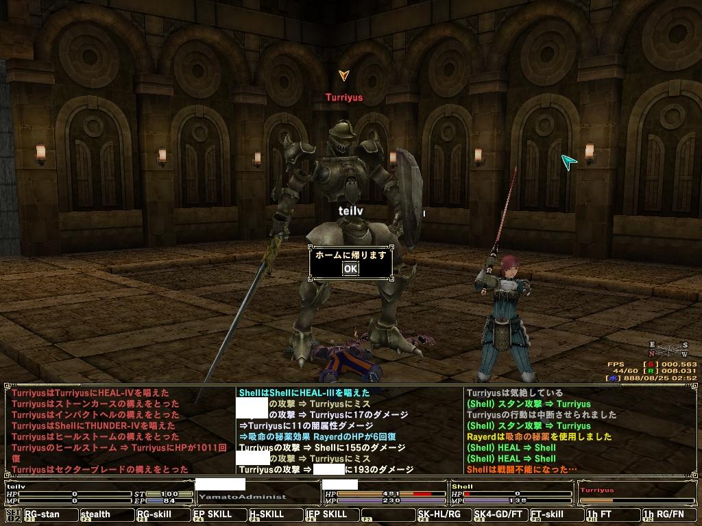 このあと少しというてころで、ヒール5で回復されたりするのが多々あり、戦闘前に掛けたシールドがきれたりと長期戦になりましたが、どうにか1PT撃破に成功