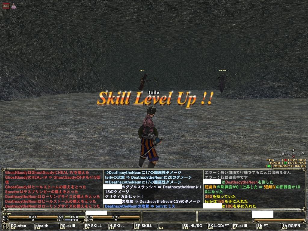 砦ボス討伐とか行かないときは、黙々遺跡で宝探しつつ短剣武器スキル上げをしていたのですが、とうとう短剣武器スキルまでもR4カンストしました。