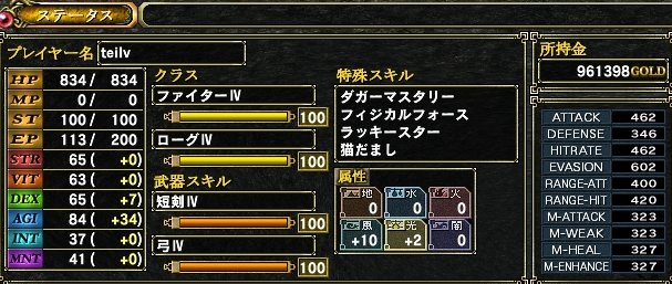 ついでに、現状でのキャラの状態なんかを