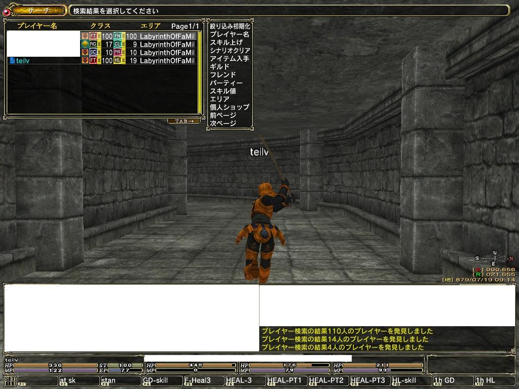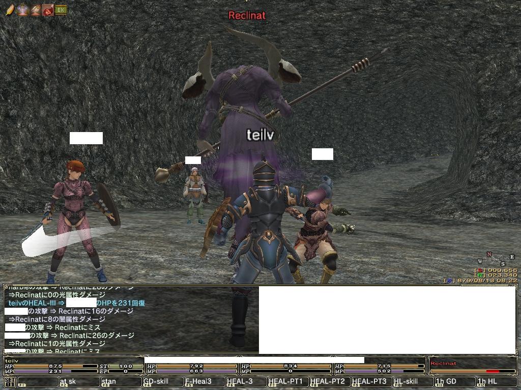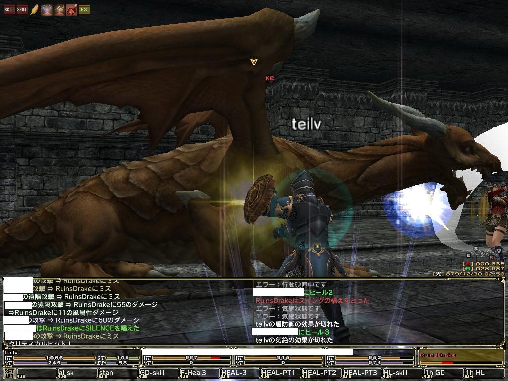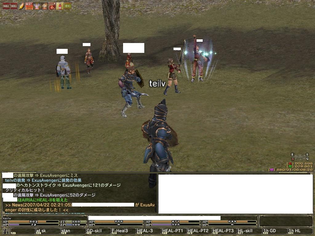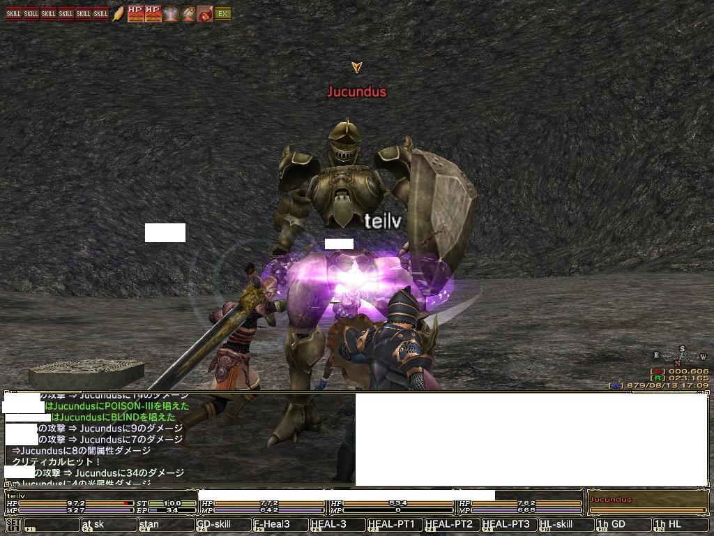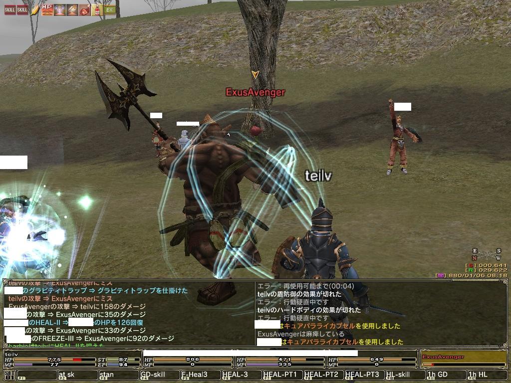 その変わりといっては何ですが、途中でGM装備を脱いだせいでHPが減っていたのですが、ユーザーが頑張ってヒール1で40ずつ回復しているのをしり目に、ヒール5で900回復してました!!