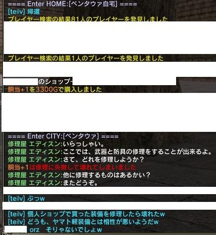 しかも、ログイン数もピーク時で120人と過疎ってるせいで物品の流通が悪すぎる('A`)