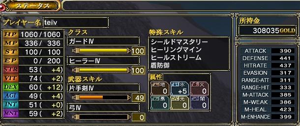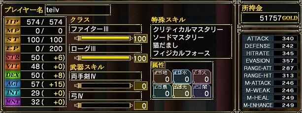 ちなみに、カンスト成り立てのステータス (DEX+3 DEX+4指輪あり)