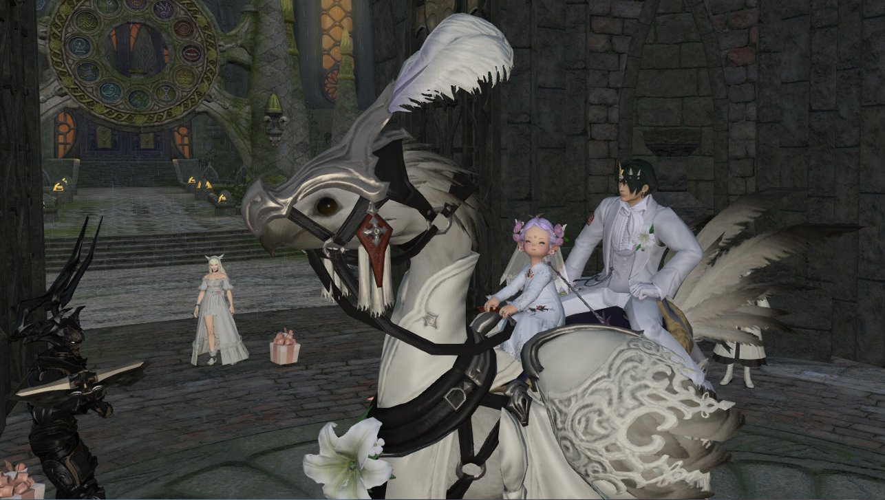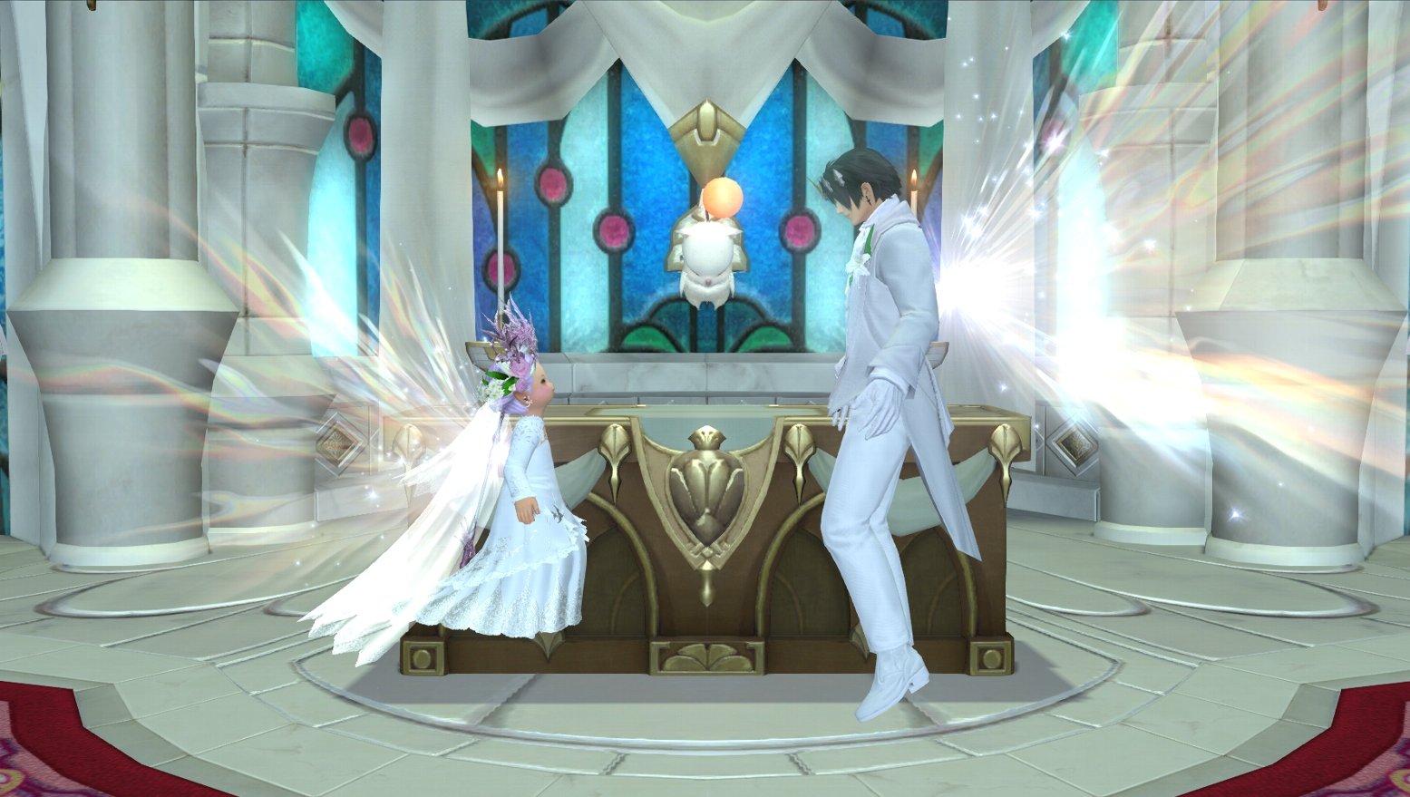 FF14で、エターナルバンド(公式)という機能が追加され、異性なら種族間を問わず結婚できるようになったのです。