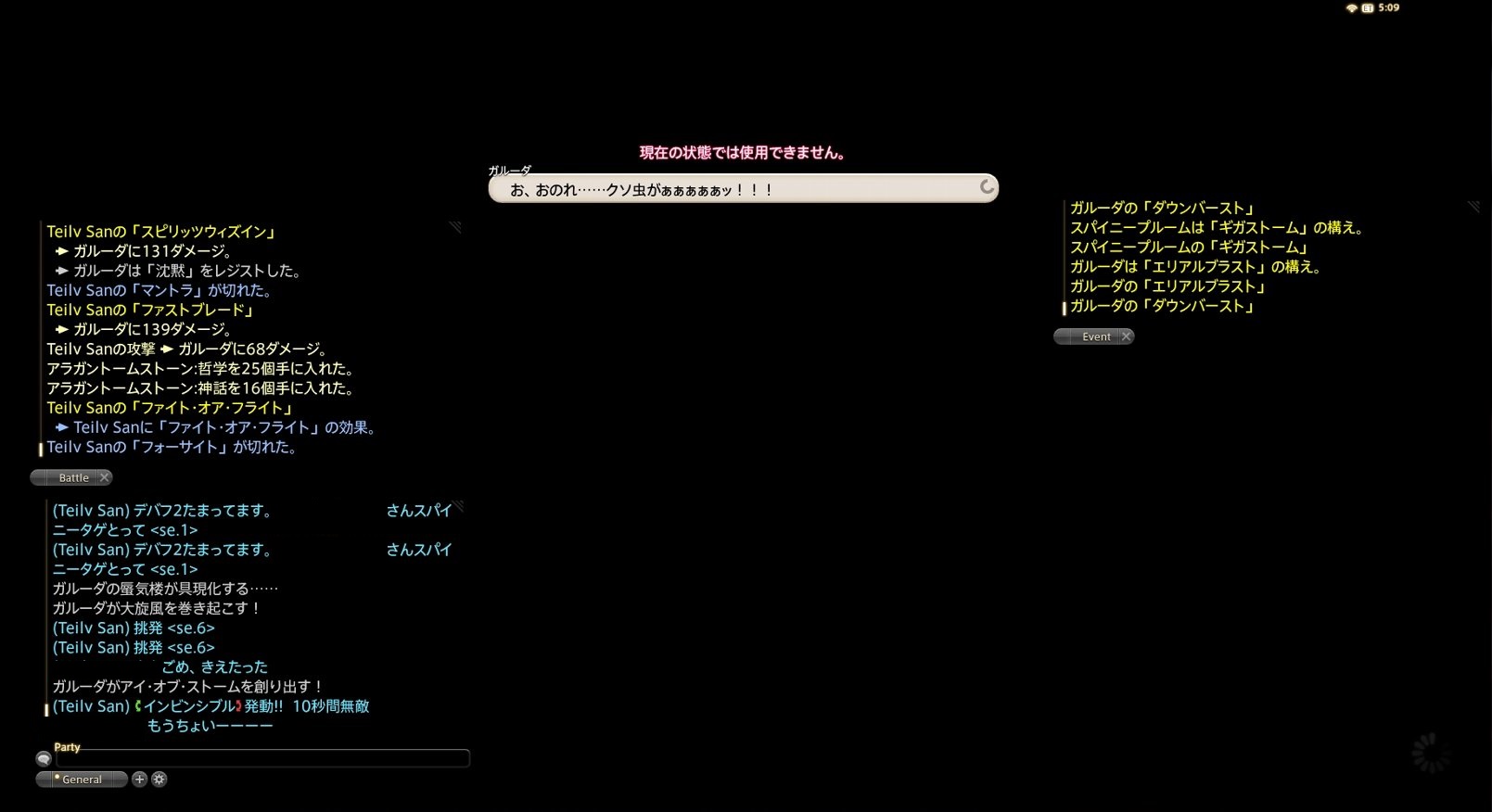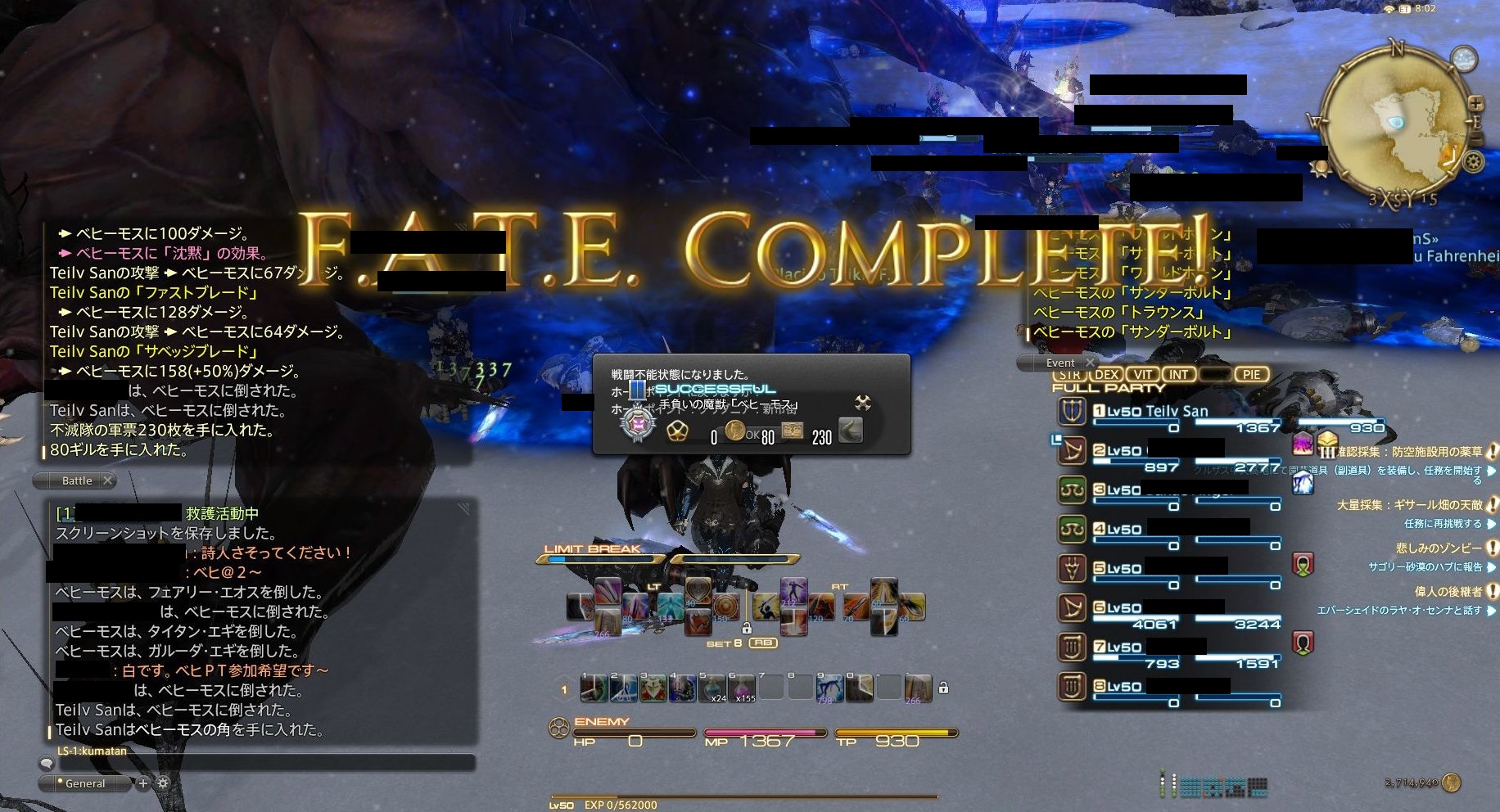 これに、タンクやヒーラーが捕まると終了するので、対策(エスナが効くのでクープの近くに生贄DPS配置)探すのに苦労してくらいで、そこをしのげば何とかなりました。
