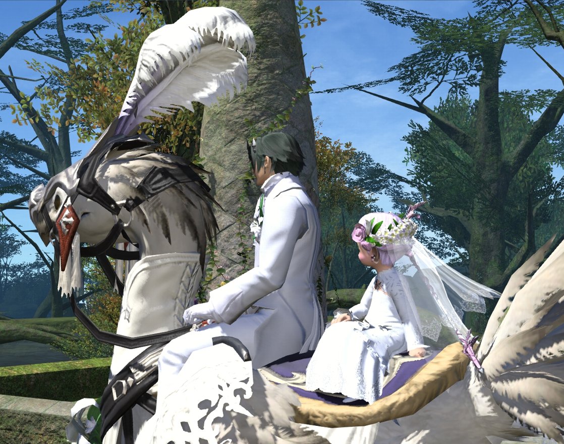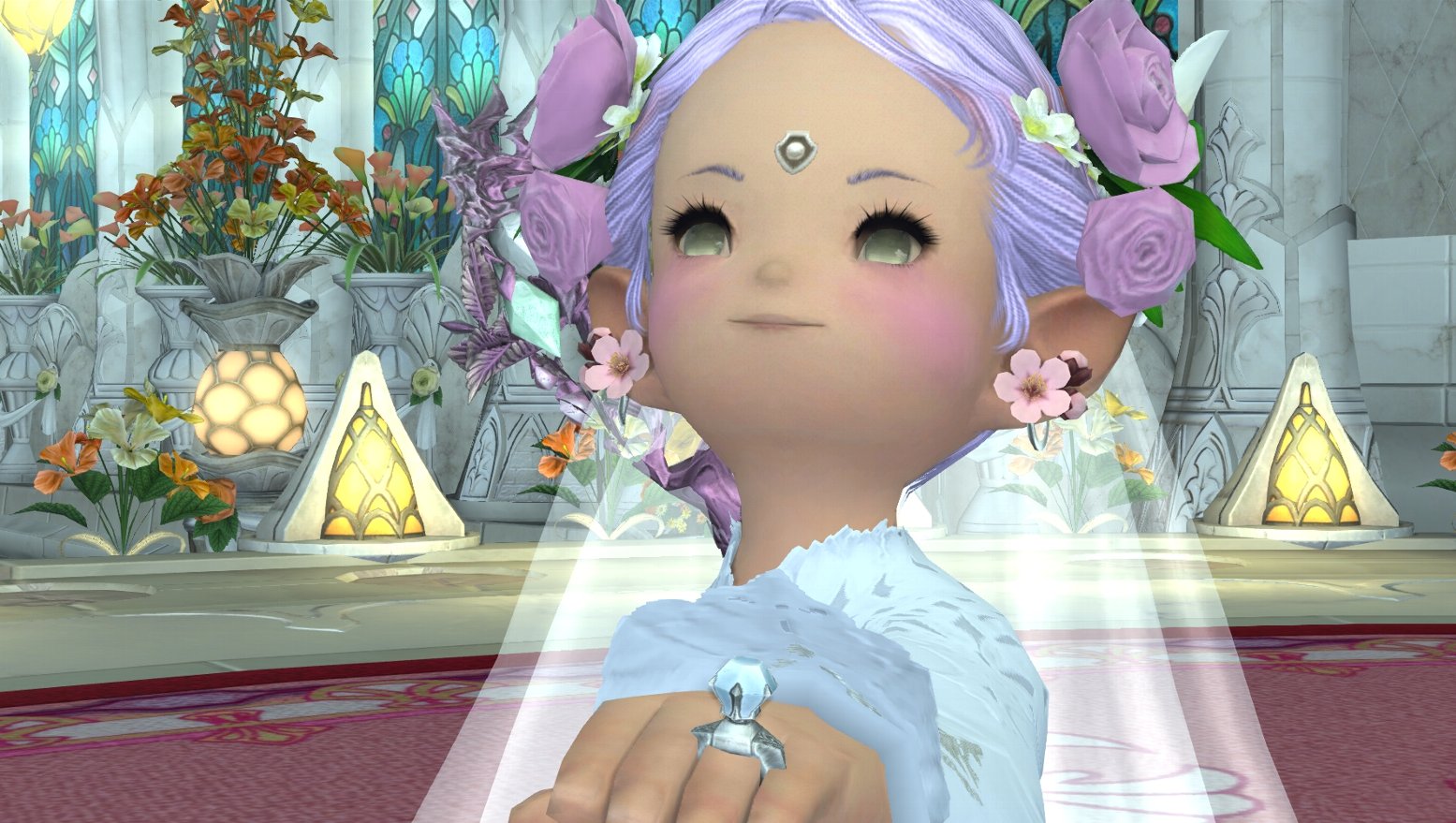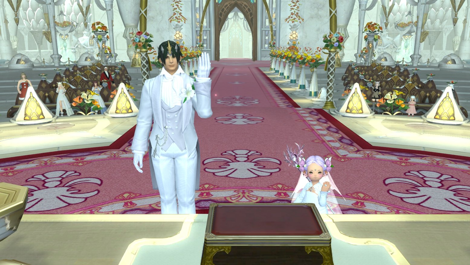 FF14で、エターナルバンド(公式)という機能が追加され、異性なら種族間を問わず結婚できるようになったのです。