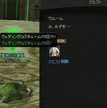 み、みずを…といいつつ報酬でウェディングコスチュームくれるてシュールだなw