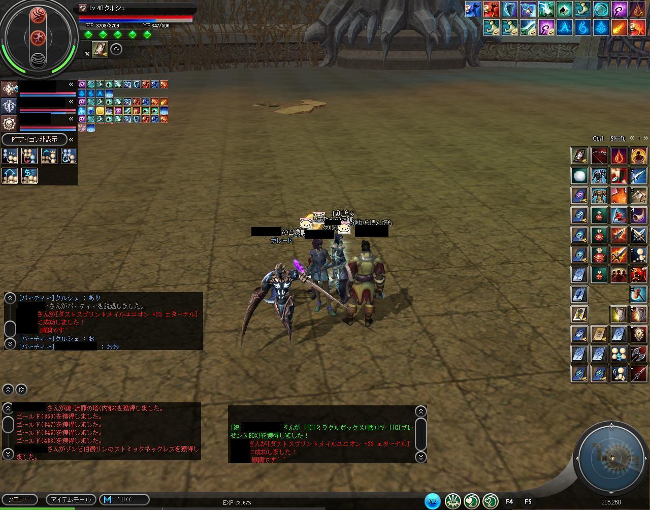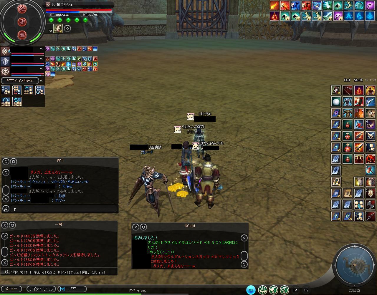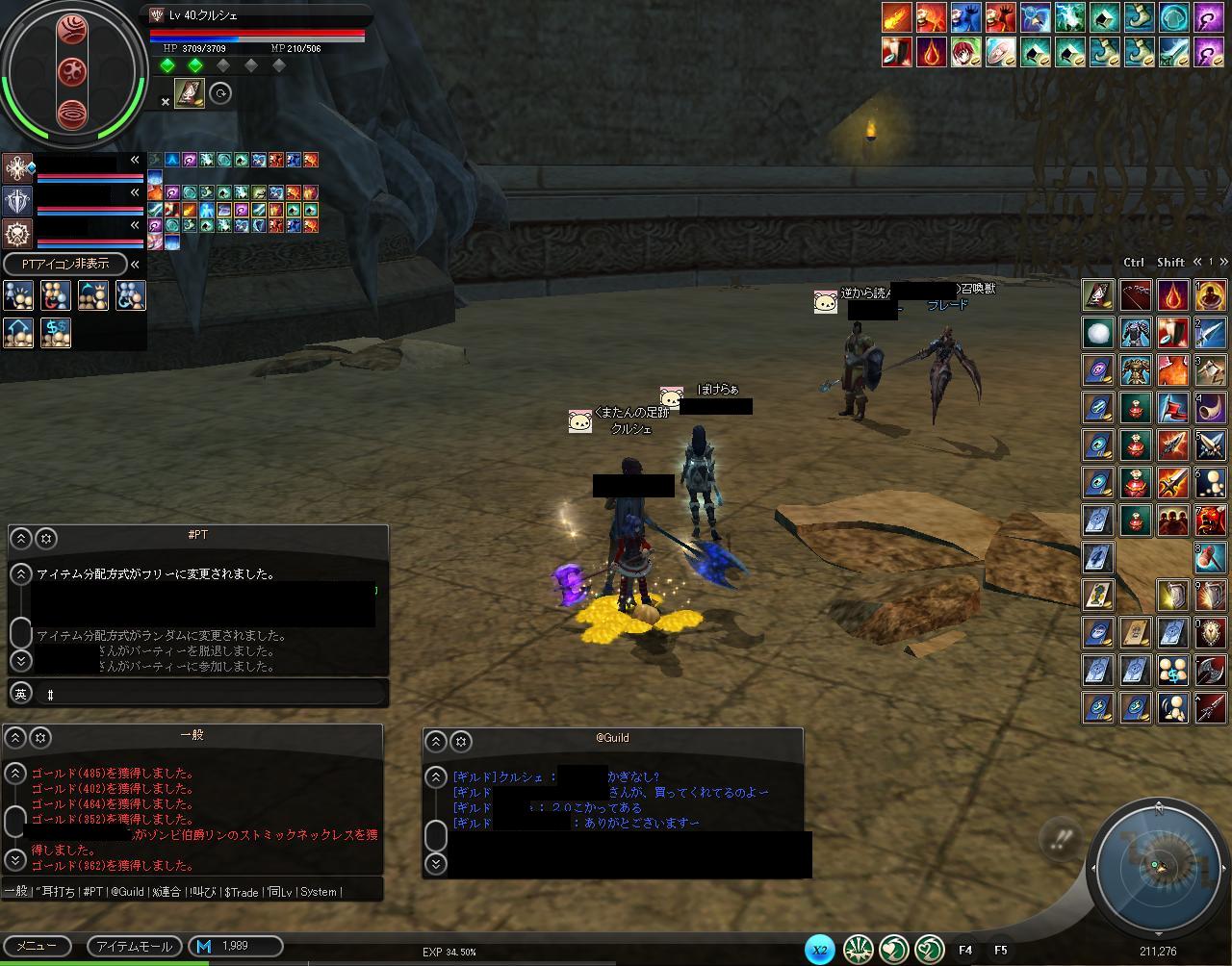ギルメンのレベル上げも兼ねて、流罪籠もりを続けていましたが、ドロップアップ効果のあるリリアの祝福とレアの祝福の効果がどうも「PT内で一番レベルの高い人」がもっとないと意味がないポイみたいです。