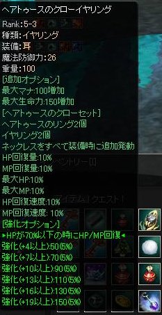 二個持ってるとHP+300とMP+200ウマウマ、結婚指輪とかレアユニ効果もあるのでだいぶHP増えたかなー。