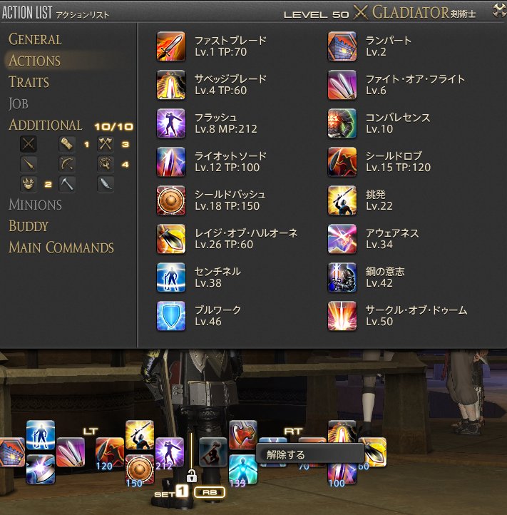 つづいて、整理戦闘するのはアクションセット