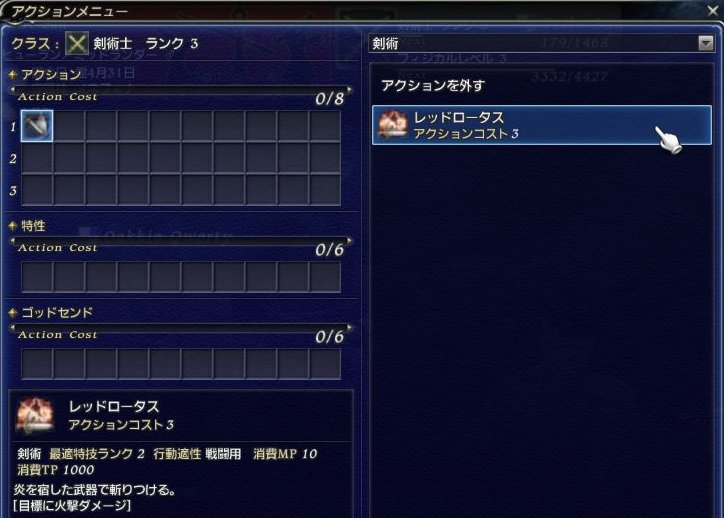 剣アイコンの空いてるところを選択して、WSを選択するだけのはずなのにセットされない。